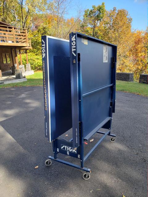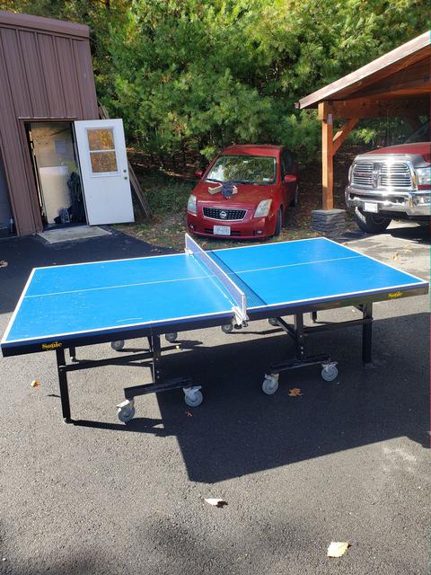 We have several used tables for sale. They have the expected wear and tear, but all are in very playable condition, structurally sound, and will come with a professional grade net set ($70 new - click to view), as well as at least 50 brand new Butterfly training balls. These are heavy duty, industrial pro-quality ITTF approved units with full 1" playing surfaces that will not warp. Available are two Stiga Expert Rollers (single fold design), as well as one Sonic (split design). The Sonic is actually a rebranded DHS table.